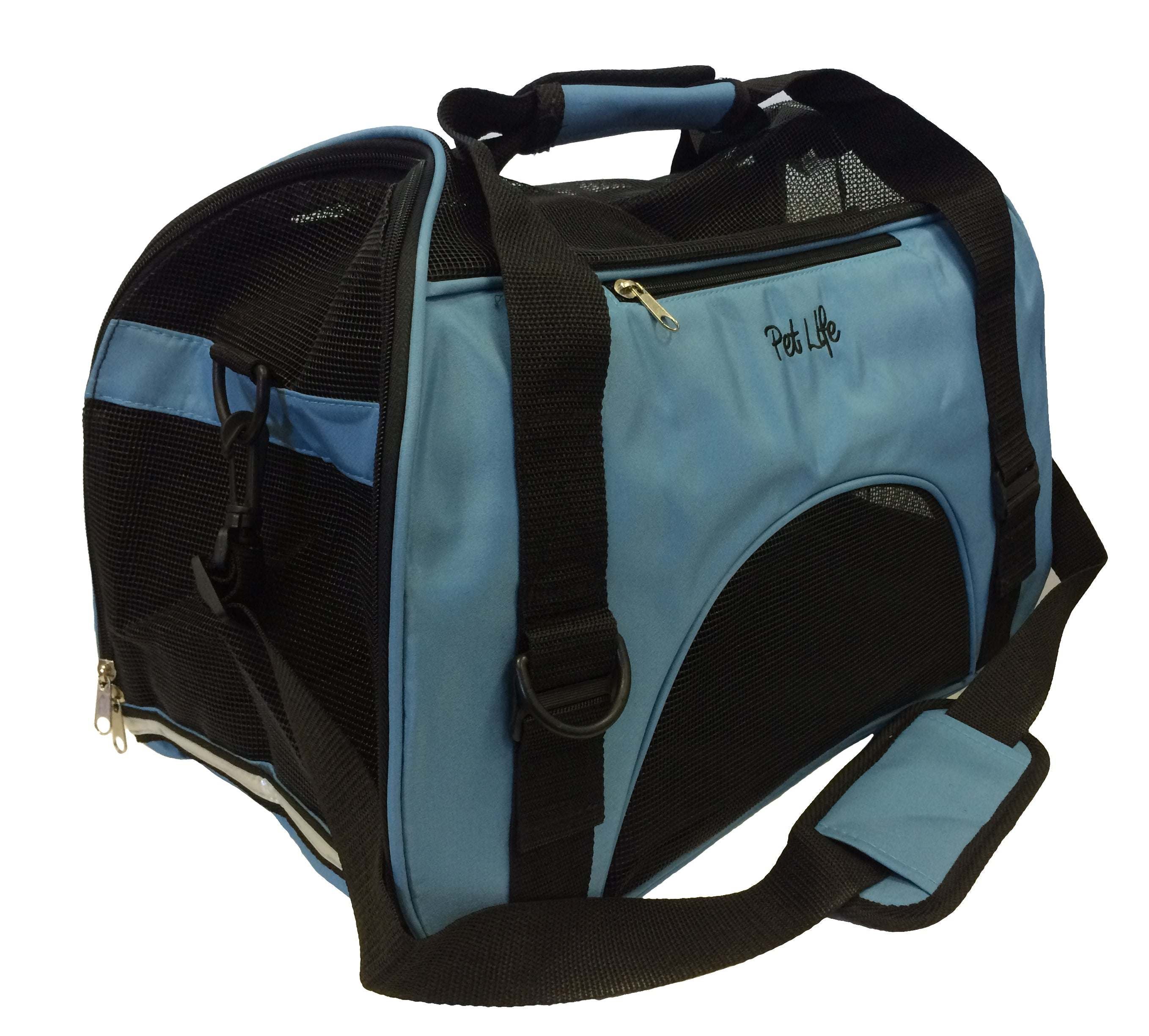 The Airline Approved Altitude Force Sporty Zippered Lightweight Fashion Travel Pet Carrier is composed of durable ballistic nylon with a heavy duty mesh surrounding for breathability and sun view. This Pet Carrier features built-in adjustable Double-Stitched over-the-shoulder straps and a built-in leash holder on the inside. This Dog Carrier is engineered to Zip, Fold and Collapses to 3 inches narrow and features a side Mesh entrance and dual sided zippered compartments. Available in multiple sizes and colors.