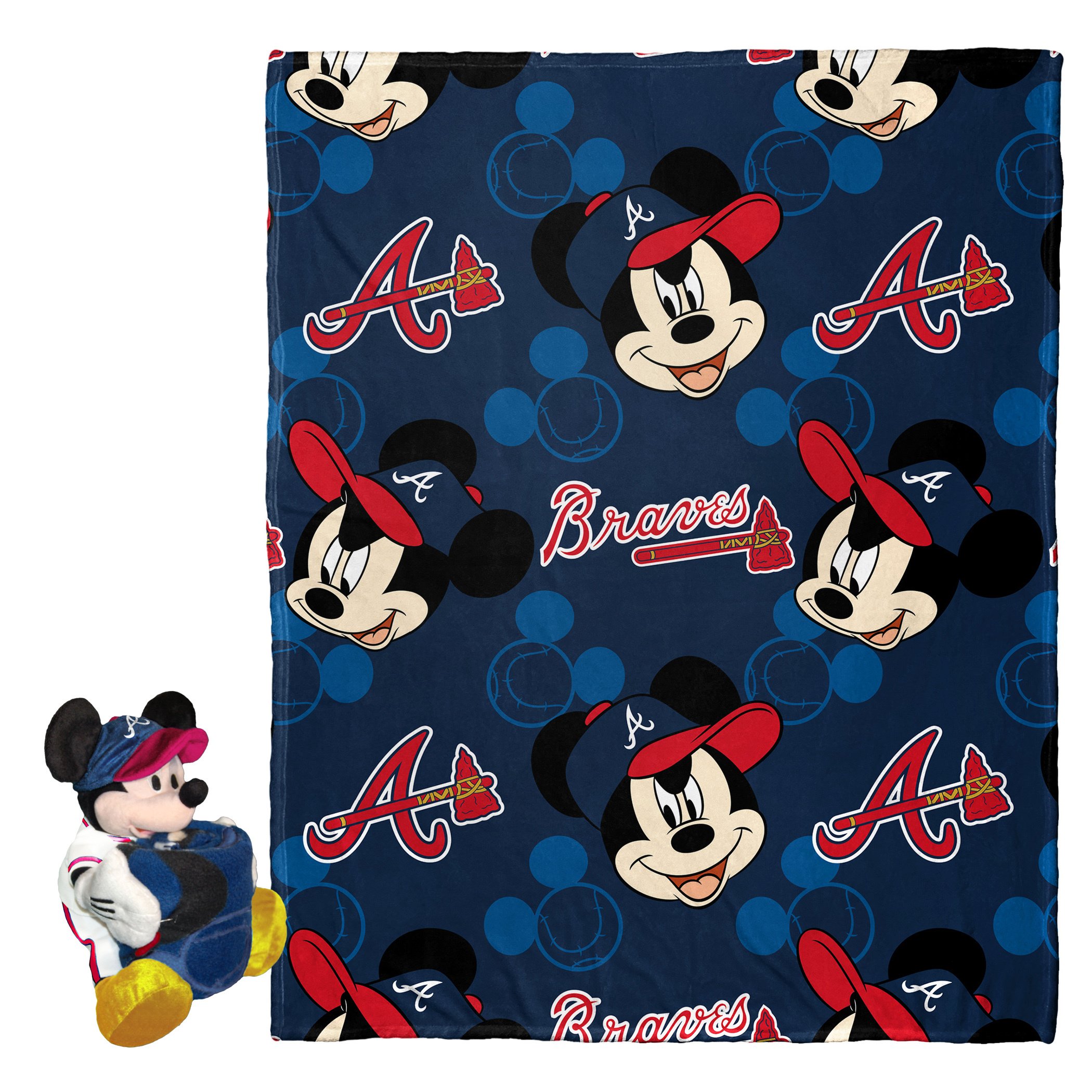 Braves OFFICIAL MLB & Disney's Mickey Mouse Character Hugger Pillow & Silk Touch Throw Set; 40" x 50"