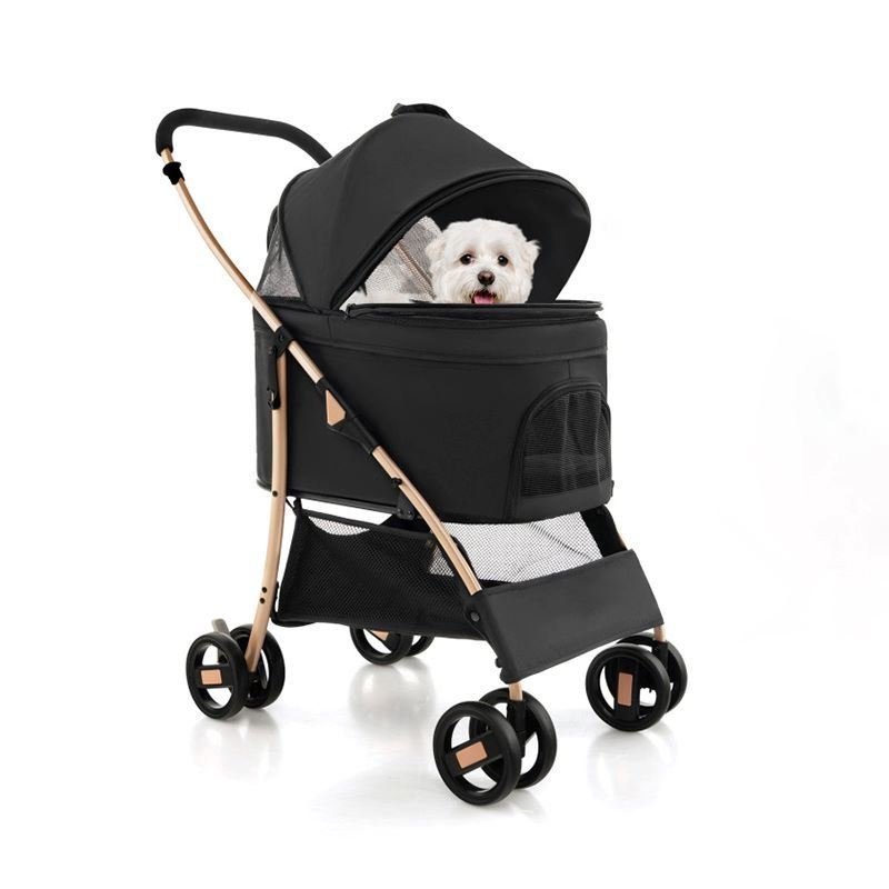 At the bottom, the dog stroller is supported by 4 wheels, including universal front wheelsand lockable directional rear wheels.