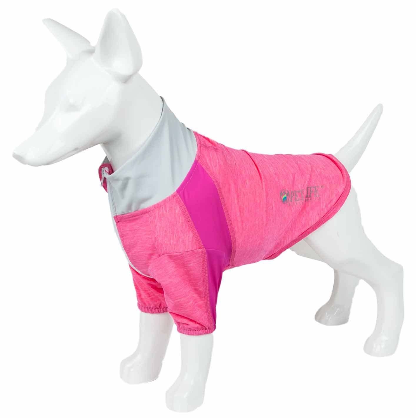 The Pet Life ACTIVE 'Chewitt Wagassy' Heathered Triple-Toned Long Sleeve Performance T-shirt features specially engineered Stretchy fabric that are Lightweight and Permeable resulting in a well Ventilated system that is specially developed to maximize Mobility and Breathability. Features 4-Way Stretch Technology that moves better in every direction with a customized relaxed fit without the squeeze and won't bunch up. The side of the body and arms feature a lighter blend of fabric for strategic ventilation. Features Quick-Drying properties that dries extremely fast while offering Anti-Odor technology that prevents odor causing microbes. The Chewitt-Wagassy Long Sleeve T-shirt is also UV Protectant against the suns harmful rays and fitted perfectly to help assist in containment or collection of shedded hairs. Design features Dual Reinforced stitching at every seam for durability with a convenient zippered design with protective zipper flaps preventing the pet's hairs from getting caught within the zipper tracks. Additionally this T features Reflective Taping for added night visibility and a Leash Slit along the back. Macine Washable. This style is part of our Pet Life Activewear Collection. Available in Multiple Sizes and Colors.