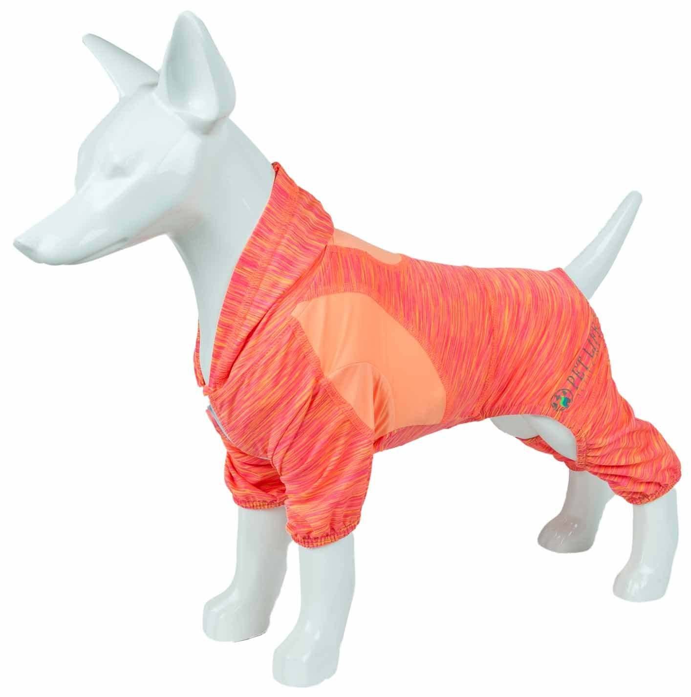The Pet Life ACTIVE 'Downward Dog' Full Bodied Hoodie is an equipped Performance system that maintains year-round body temperature while providing complete flexibility. This Yoga-inspired material features dual Lightweight Micro-Treated Quick-Drying Fabrics that dry really fast that repels perspiration while offering Anti-Odor technology that assists with odor causing microbes. Features 4-way Stretch construction that move better in every direction for great Mobility and is extremely Lightweight and elastic that feels almost like a second-skin. Additionally this Hoodie features strategically mapped ventilation points for added Breathability. Features a tapered expandable fit with stretch-banded lining that expands for increased growth room. Offers UV Protection against the suns harmful rays and fitted nicely around the body to help assist in containment or collection of shedded hairs. Design features Dual Reinforced stitching at every seam for Durability and a leash-slit along the backside, a pull-over hood and a zipper underneath for convenient on and off access with Reflective Taping for added night visibility. Machine Washable. This style is part of our Pet Life Activewear Collection. Available in Multiple Sizes and Colors.