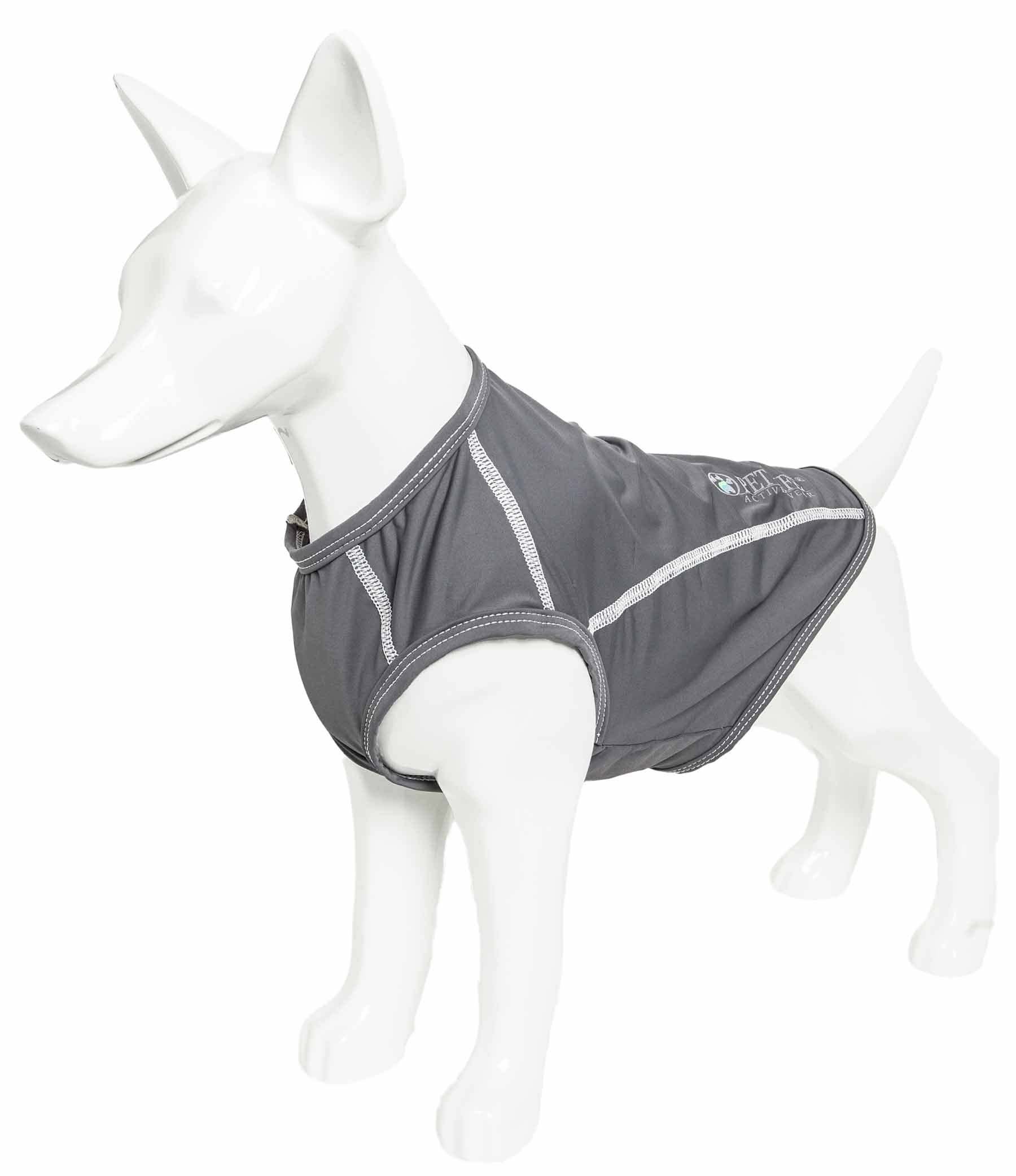The Pet Life ACTIVE 'Racerbark' Solid Dog Tank Top is comprised of a Lightweight and Stretchy Yoga-like Performance fabric that maximizes Mobility and Comfort. Features 4-Way Stretch Construction that moves better in every direction with a customized fit that's further than next to skin or Fur without the squeeze and won't bunch up. This specially formulated stretchy Micro-Fiber features a higher-grade of Elasticity that won't ever lose it's shape and is Permeable which provides Breathability. This Smooth-to-the-touch fabric features Quick-Drying properties that repels body moisture or sweat and features Anti-Odor technology that assists with odor causing microbes. The Racerbark is also UV Protectant against the suns harmful rays and strategically fitted to help assist in containment of shedded hairs. Design features Dual Reinforned stitching at every seam for added durability with a Pull-Over design for easy on and off access and Reflective-Taping for added night visibility. Machine Washable. This style is part of our Pet Life Activewear Collection. Available in Multiple Sizes and Colors.