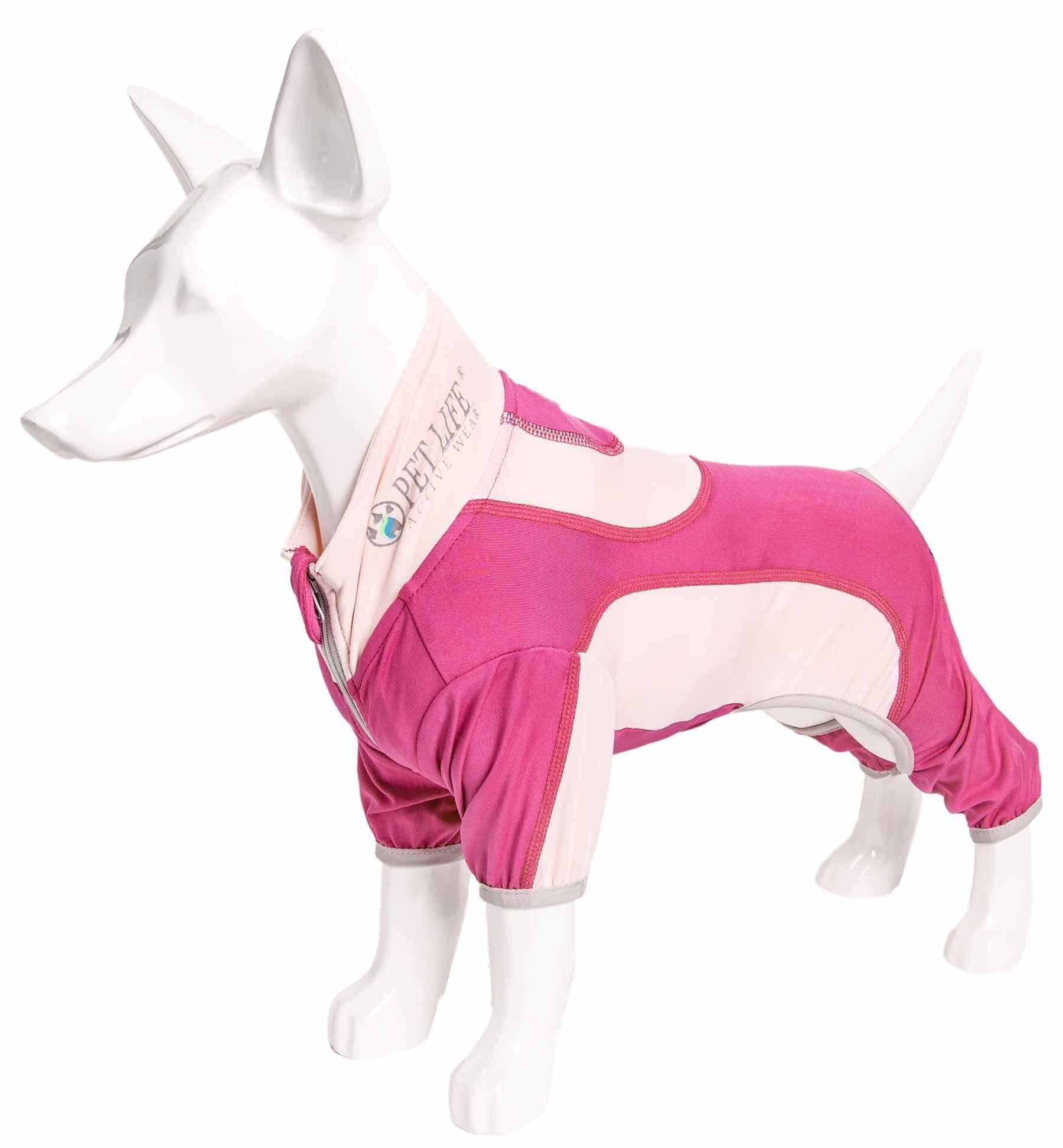 The Pet Life ACTIVE 'Warm-Pup' Dual-Toned Full Bodied Tracksuit is Next-Generation performance unleashed. Features a specially formulated Ultra-Lightweight Micro-knit system that maintains body temperature and features 4-way Stretch technology that moves better in every direction for premium Comfort and Mobility with strategic ventilation points for Breathability. Features a tapered and streamlined fit that's also expandable with stretch-banded lining that extends additional room for growth. This fabric features Quick-Drying properties that repels perspiration and dries really fast while offering Anti-Odor technology that assists with odor causing microbes. Offers UV Protection against the suns harmful rays and fitted to help assist in containment or collection of shedded hairs. Design features Dual Reinforced stitching at every seam for durability and a leash-slit along the backside, a fashion collar and a zipper underneath for convenient on and off access with Reflective Taping for added night visibility. Machine Washable. This style is part of our Pet Life Activewear Collection. Available in Multiple Sizes and Colors.
