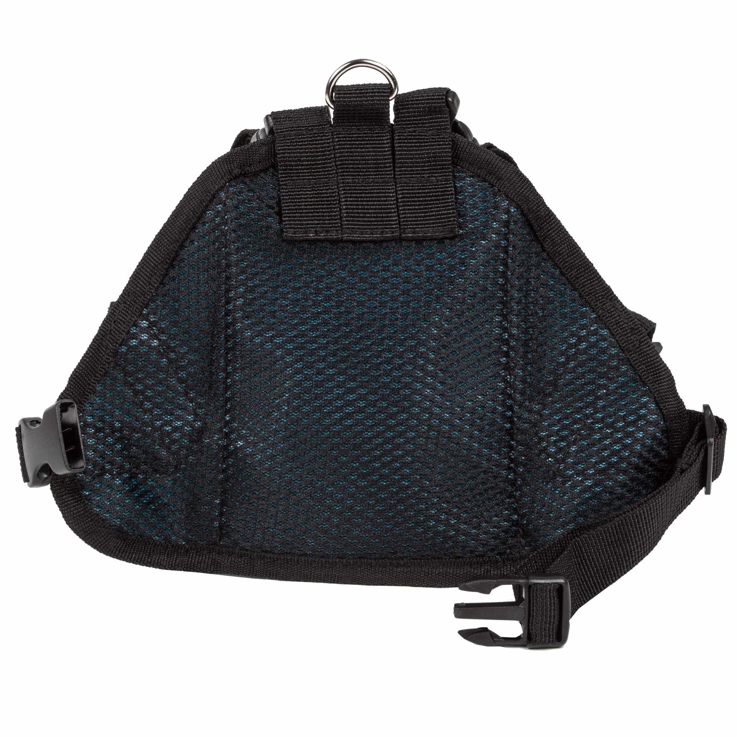 2.Features an Above Stainless Steel Harness Ring with Dual Adjustable Straps along the back-side